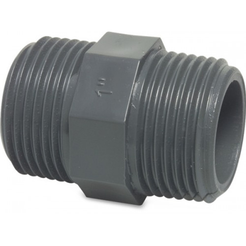 Mega Nippel PVC-U 1 1/2" buitendraad 10bar grijs