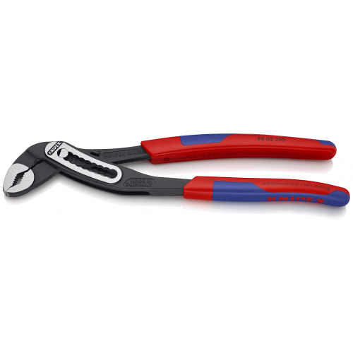 Hoge stabiliteit dankzij dubbele geleiding. Zelfklemmend op buizen en moeren: glijdt niet van het werkstuk af en werkt krachtbesparend. Klembeveiliging verhindert verwondingen. Gunstige hefboomwerking: optimale krachtoverbrenging. Grijpvlakken met speciaalgeharde tanden, hardheid van de tanden ca. 61 HRC: steeds weer veilig grijpen dankzij hoge slijtvastheid. Chroom-Vanadium elektrostaal, in olie gehard en getemperd.