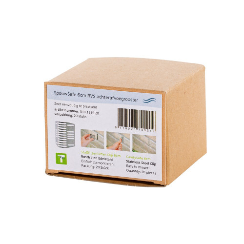 Achterafvoegrooster in RVS. SpouwSafe is de enige juiste, originele, gepatenteerde, universele oplossing voor het verfraaien van de gevel en voor bescherming van de spouw tegen ongedierte en vuil. Dit voegrooster voorkomt dat bijen, wespen, ratten en muizen via de open stootvoegen in de spouw komen.