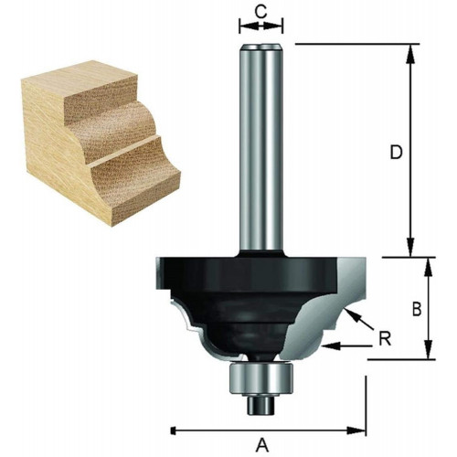 Dubbelsnijdende HM contraprofielfrees met kogellager 9,52mm (7900102).