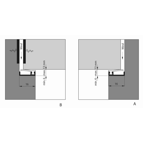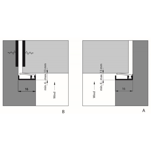 Plaatsing in de 6 mm ruimte tussen kozijn en raam of deur