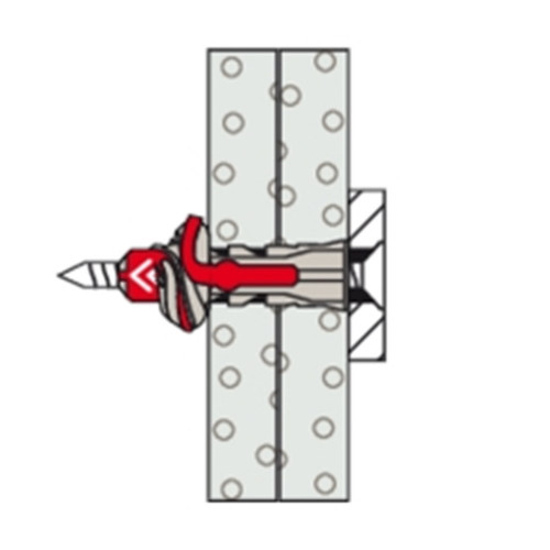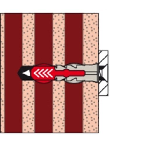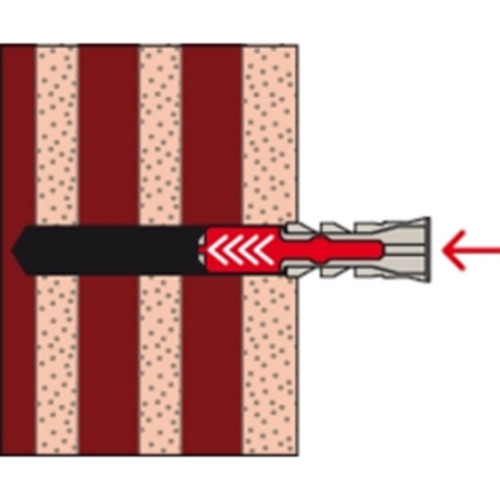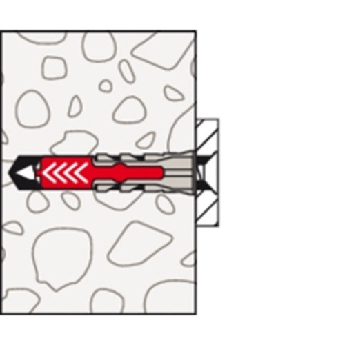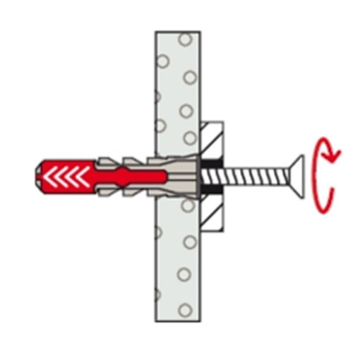 De fischer DuoPower heeft een zeer hoge bevestigingswaarde door de 2 componenten: de grijze component van kwalitatief hoogwaardig nylon activeert, afhankelijk van het bouwmateriaal, automatisch het optimale werkingsprincipe (spreiden, vouwen, knopen) voor het optimaal houvast. De expansievleugels van de rode component ondersteunen de betrouwbare spreiding en biedt extra veiligheid voor de grijze component. De schroef indraaien en tot slot goed „aantrekken“. De bij de kop aangebrachte rand voorkomt dat de plug in het boorgat glijdt.