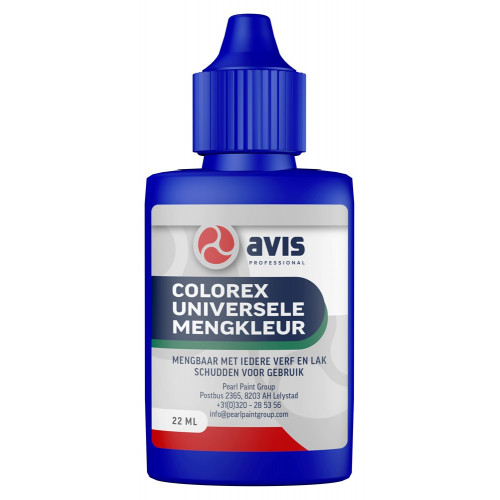 Avis Colorex is ontwikkeld voor het op kleur brengen van verven en lakken. Het beïnvloedt de eigenschappen van de verf niet en is oplosmiddelvrij. Voor het op kleur brengen van verven en lakken op basis van olie-, alkydhars, emulsie , chloorrubber, enz. Het is ook toepasbaar in moderne watergedragen producten. Bevat geen oplosmiddelen, velt niet en zakt niet uit. De kleurpigmenten zijn krachtig, zuiver en lichtecht.