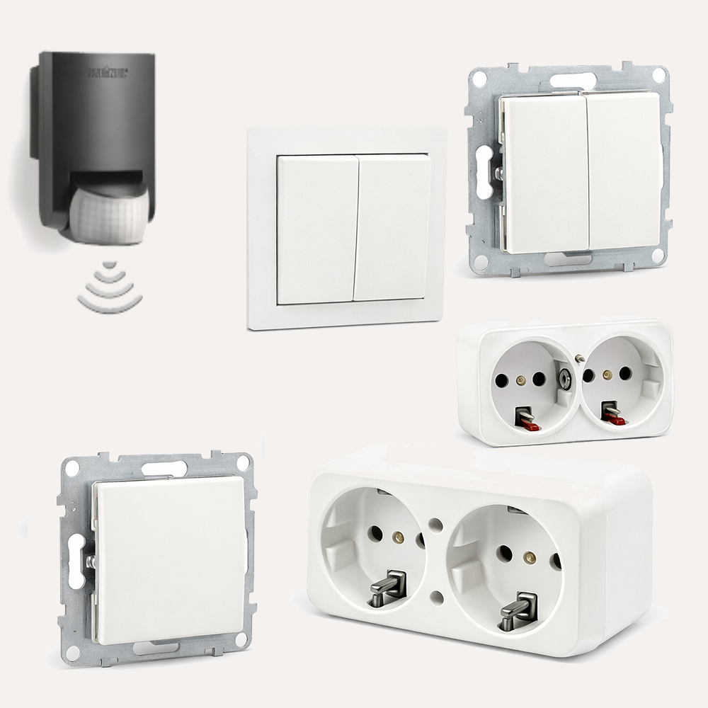 Alles voor elektrische installatie, aansluiting, schakelen, verlichting en stroomvoorziening voor woning, werkplaats en buitengebruik.