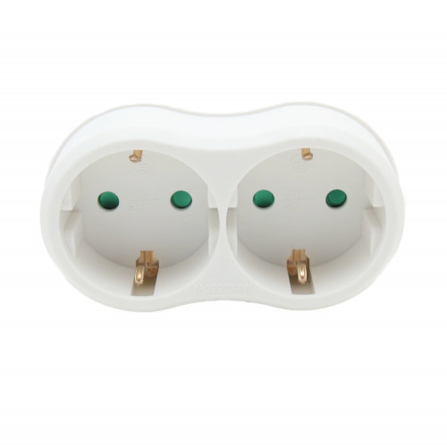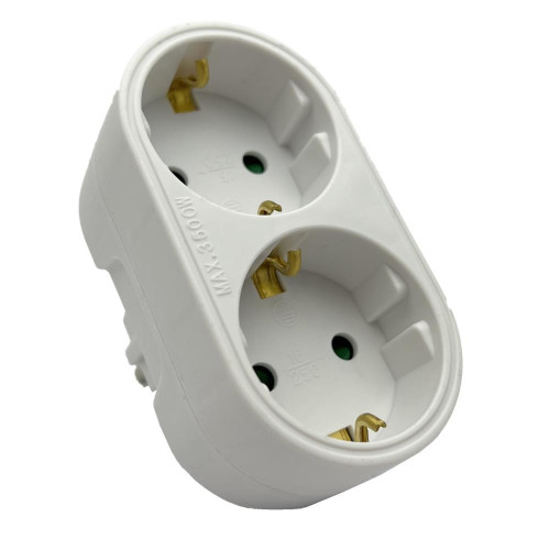 Stekkeradapter 2-voudig randaarde Adapter dubbel om op 1 randaarde stopcontact 2 randaarde stekkers aan te sluiten Verticaal Merk: Entac Materiaal: PVC Kleur: Wit