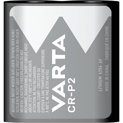 Type: CR-P2 Merk: Varta Verpakking: Blister met 1 batterij Materiaal: Lithium Voltage: 6 Volt Lengte: 34 mm Breedte: 19.5 mm Hoogte: 36 mm Andere benamingen: CRP2 DL223A EL223AP K223LA CRP2S
