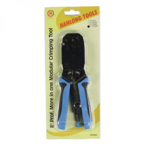 Professionele krimptang met ratel voor modulaire connectoren. Knipt, stript en krimpt modulaire pluggen.Geschikt voor:• RJ10 (4P4C)• RJ11 (4P6C)• RJ12 (6P6C)• RJ45 (8P8C)