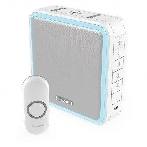 Dankzij de toonaangevende 5 jaar levensduur van de batterij, het hoorbare bereik van 100 m en 200 m draadloos bereik, mist u met de Honeywell Home DC915N deurbel geen enkele bezoeker meer. Ze heeft een slaapstand zodat u ongestoord kunt ontspannen en het innovatieve halo-licht waarschuwt u ook als de deurbel niet hoorbaar is. Koppel twee deurbellen aan elkaar voor een groter draadloos bereik en gemoedsrust