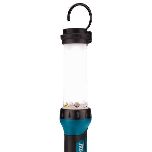 Led-lantaarn met drie lichtstanden: 360°, 180° en een lamp op de kop. Uitgevoerd met soft-grip en voorzien van een USB-poort voor het opladen van bijvoorbeeld je mobiele telefoon. Maximale brandtijd met BL1850B: 360°: 11 uur 180°: 23 uur Koplamp: 36 uur