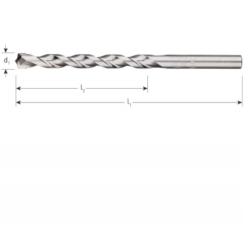 Boor is vervaardigd uit hooggelegeerd Chroom-Vanadium staal. Door de speciaal geslepen spiraal is een hoge boorsnelheid en gruistransport mogelijk. De soldering van het hardmetalen plaatje is bestand tegen temperaturen boven 1000°C. Hamervast. Alle boren boven ø13 zijn standaard afgedraaid naar schacht ø13.