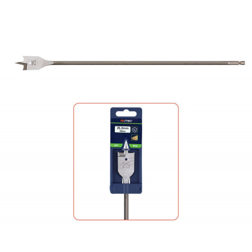 Lange speedboor, met 1/4" bit-aansluiting, geslepen, gehard, met spaanbreker. Zeskant schacht voorkomt slippen in de boorkop.