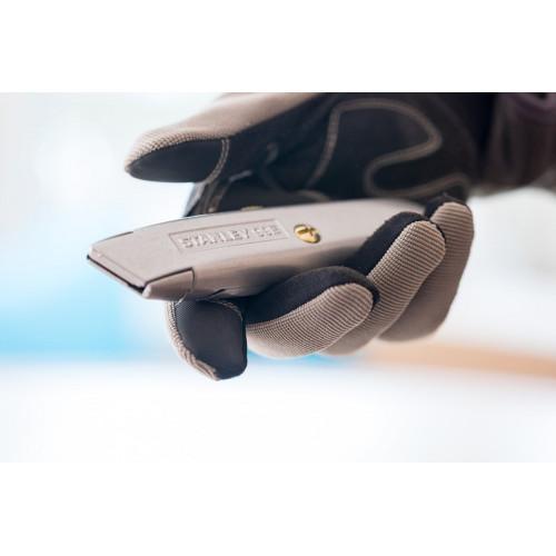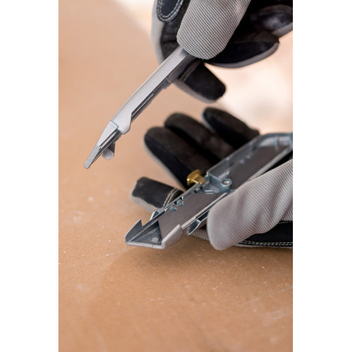 Interlock neusverbinding: hierdoor kan snijmesje, ook onder grote kracht, niet naar boven gedrukt worden