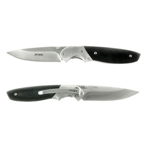 De X-Treme Black Pakkawood is een Klassiek gentleman’s mes. Het heft is van pakkawood, dit is een combinatie van hout en epoxy. Hierdoor heeft het heft de natuurlijke uitstraling van hout maar de flexibiliteit en stabiliteit van kunststof. De Pakkawood is eenvoudig één handig open te klappen door zijn Duimstud, vervolgens houdt de linerlock het mes stevig in geopende stand. Uitgevoerd met een draagclip.
