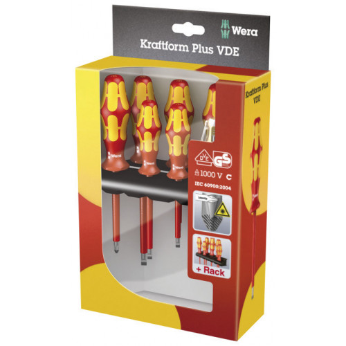 Kraftform: De veiligheids-schroevendraaier. Met Lasertip + spanningszoeker + houder. Met "Take it easy tool finder": Kleurcodering op profiel en maatcode.
