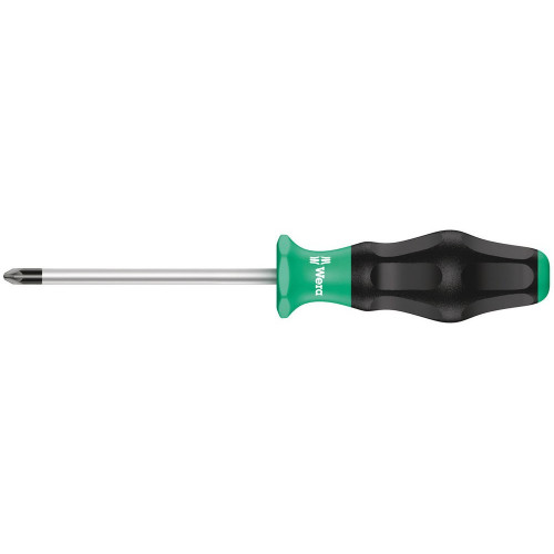 Hoogwaardige Kraftform Comfort-schroevendraaier met ronde kling voor Pozidriv*-schroeven. Meerdelige Kraftform-handgreep voor snel en veilig werken. De Wera Black Point-punt en een uitgebreide harding garanderen een lange gebruiksduur van de punt en zorgen voor extra corrosiebescherming en een hoge pasnauwkeurigheid. Zeskantige wegrolbescherming verhindert telkens wegrollen op de werkplek. Met greepcodering om het gereedschap sneller te kunnen vinden en sorteren. * Pozidriv = geregistreerd handelsmerk van de firma European Industrial Service Ltd.