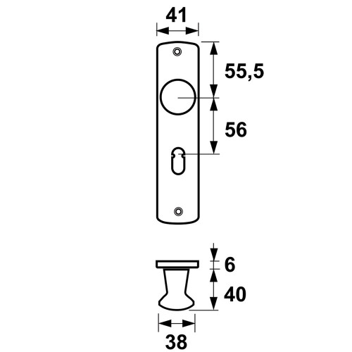 BINNENDEURSCHILDEN CURVE KASTKNOP SL55/180X41X6/ALU. F1/EAN