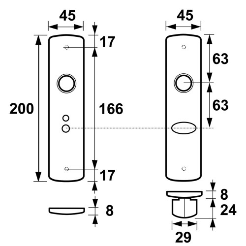 geen zichtbare bevestigingspunten, doordat het deurschild over een kunststof basisplaat wordt geklikt