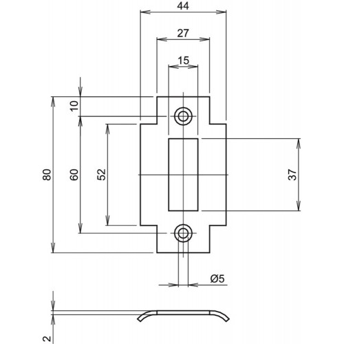 Rechthoekige of afgeronde sluitplaat in messing-, messing vernikkeld of RVS