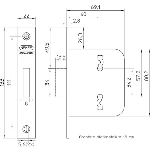 Geschikt voor kastdeuren in de woningbouw. Standaard staal gelakte slotkast met klaviersleutel en staal gelakte rechthoekige voorplaat.