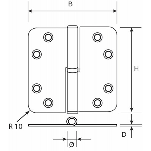 KOGELSTIFTPAUMELLE / RONDE HOEKEN / 89X89 MM / RECHTS / RVS GEBORSTELD