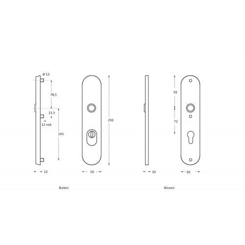 SKG3 VEILIGHEIDSSCHILDEN OVAAL 250X50MM PROFIELCILINDERGAT 72MM MET KERNTREKBEVEILIGING RVS