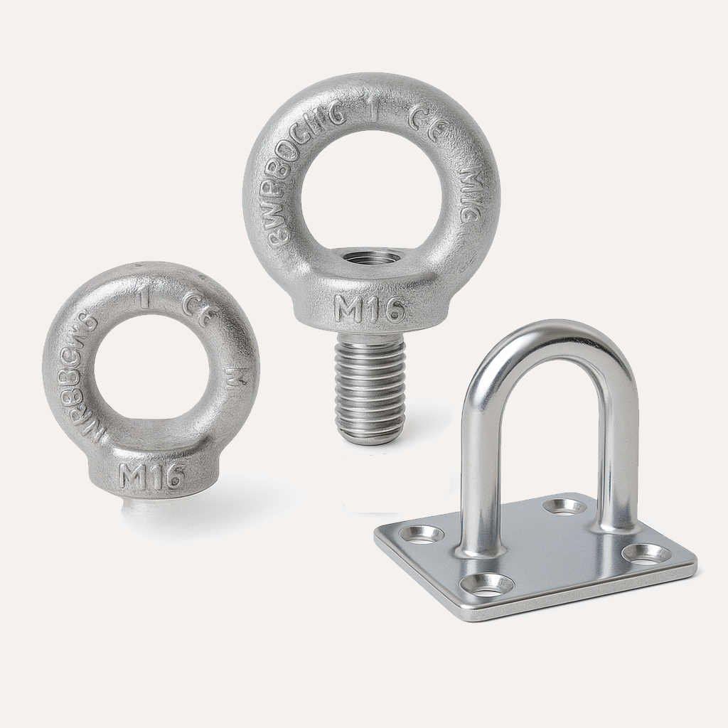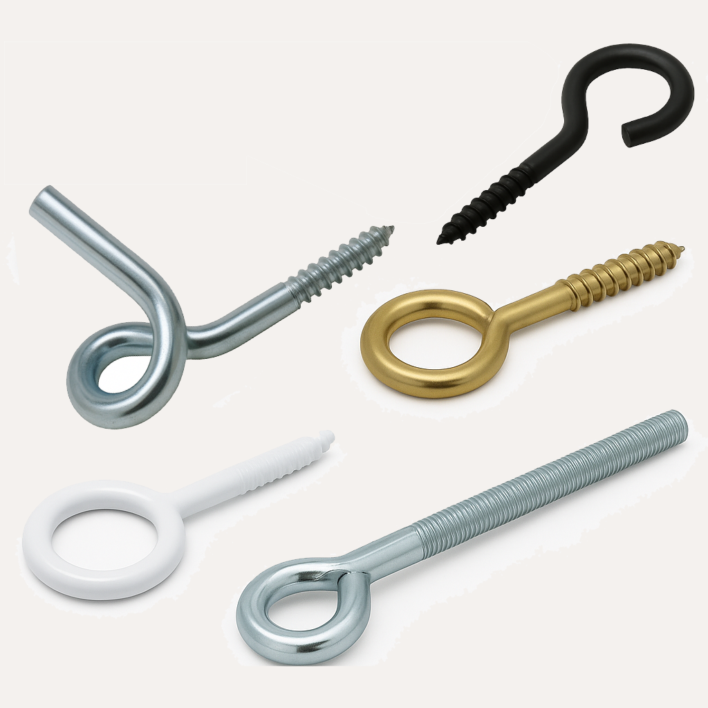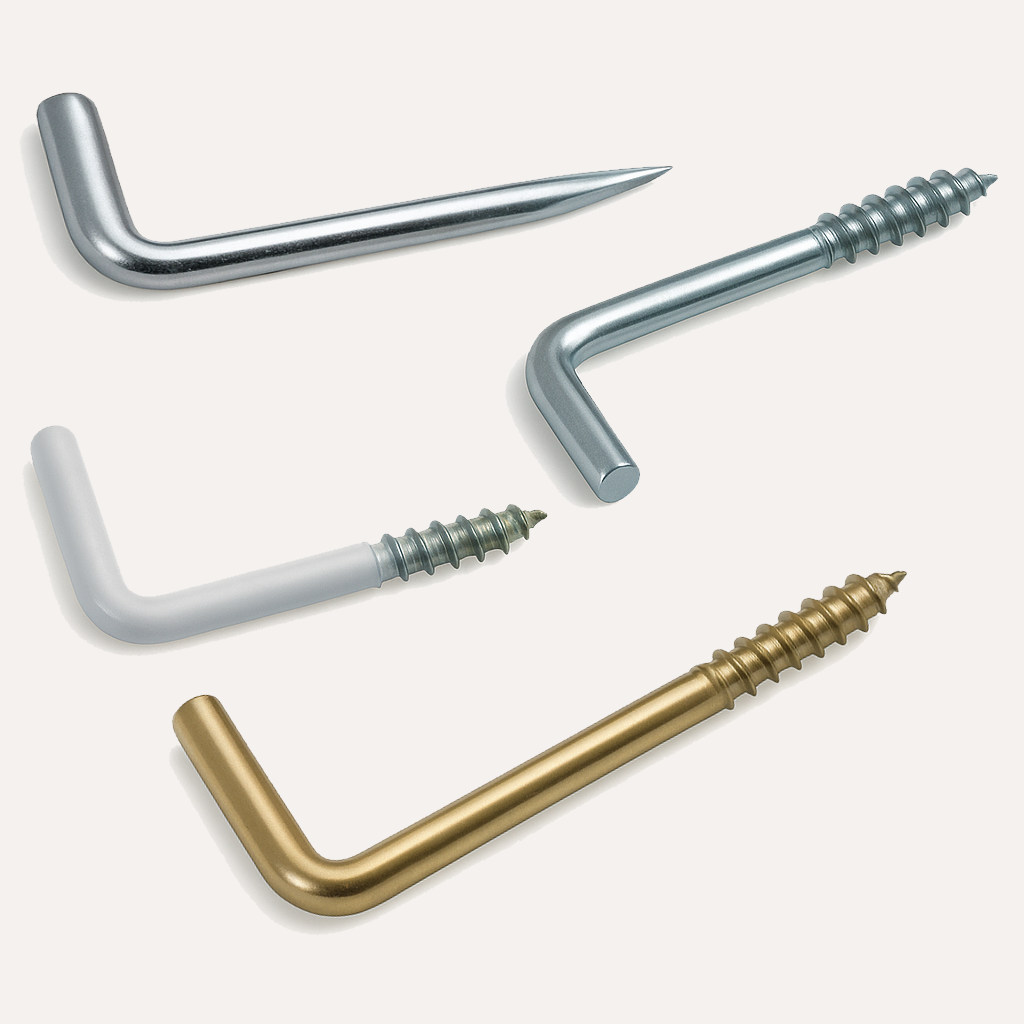 Haken en ogen in verschillende uitvoeringen voor ophanging, bevestiging en decoratie. Van S-haken en vleeshaken tot schroefogen – voor elke toepassing de juiste haak.