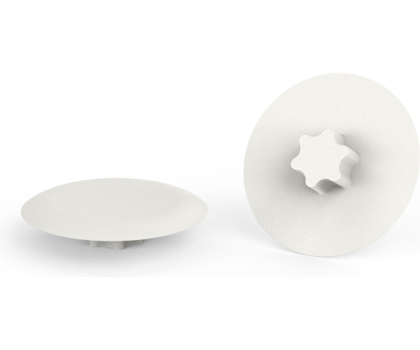 Kunststof of metalen kapjes om schroefkoppen af te dekken, voor een nette afwerking en extra bescherming tegen slijtage of corrosie.
