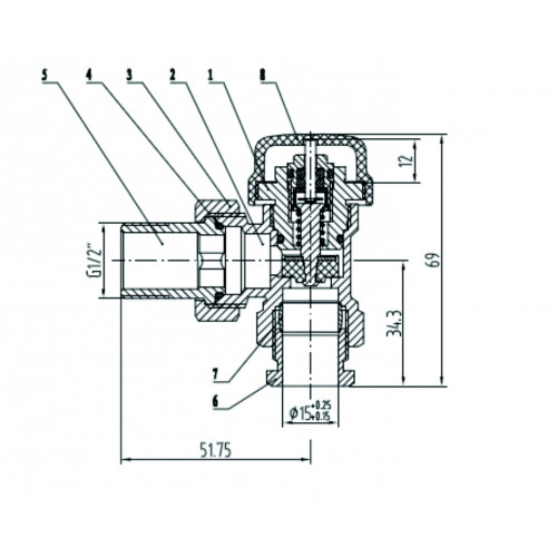 THERMOSTATISCH VENTIEL ZONDER KNOP 1/2 HAAKS+ADAPTOR