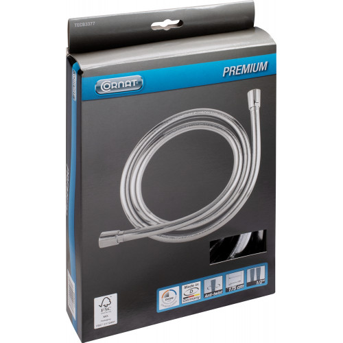 De kunststof doucheslang van Cornat is de ideale aansluiting voor je handdouche. Hij kan eenvoudig en veilig worden bevestigd op elke 1/2 inch aansluiting. Met zijn klassieke chroomlook past de slang perfect bij elke chromen douche. De slanglengte van 175 cm zorgt voor bewegingsvrijheid en garandeert je een comfortabele douche-ervaring.