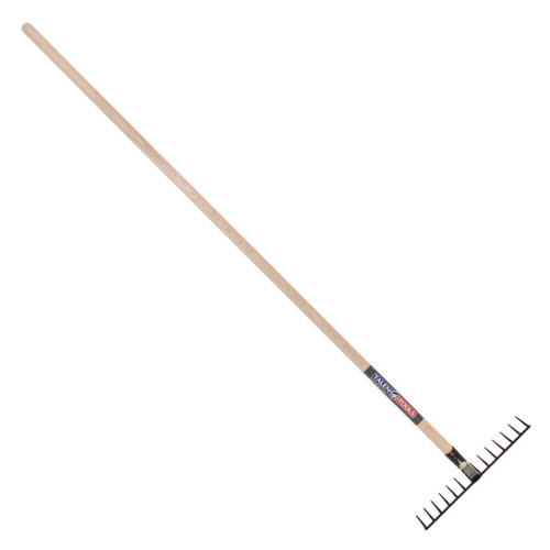 Deze tuinhark is geschikt voor het verwijderen van tuinafval uit de borders en het egaal harken van grind. De keuze voor het aantal tanden is afhankelijk van wat voor oppervlakte er geharkt moet worden. De tuinhark is geproduceerd uit gesmeed staal wat sterker is dan verzinkt staal.