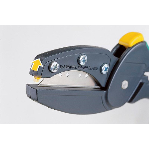 Het vlijmscherpe, krachtige roestvrijstalen mes van deze allessnijder snijdt probleemloos door stevige materialen zoals slangen, kabels en zelfs leer tot 13 mm dik. Daarbij ligt de megaCut met zijn ergonomische, slipvaste handgreep comfortabel in de hand. Een verende veiligheidsneus aan de voorzijde van de messenhouder dient als contactbeveiliging en voorkomt onbedoeld contact met de mespunt. Bovendien beschermt de geïntegreerde sluitinrichting tegen letsel. Een reservemes is inclusief.. dubbelzijdig geslepen mes zo scherp als een scheermes, roestvrijstalen mes voor het knippen van vrijwel alle materialen