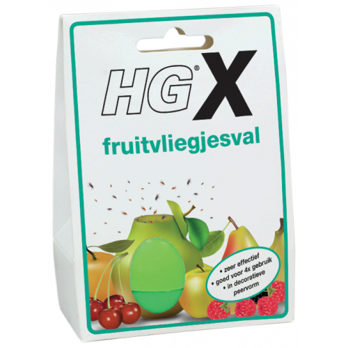 Met name in de zomermaanden kunnen fruitvliegjes een ware plaag zijn. In deze periode van het jaar zijn etensresten of rijpend fruit namelijk zeer aantrekkelijk voor deze hinderlijke en zich snel voortplantende beestjes.De HGX fruitvliegjesval biedt hiervoor een effectieve oplossing dankzij de decoratieve en doeltreffende peervormige val. Want de fruitvliegjes worden aangetrokken door de speciale val-vloeistof en als zij dan eenmaal in de val zitten, kunnen zij zich niet meer voorplanten.Draai het bovenste gedeelte van de val los, verwijder het trechtertje en doseer vervolgens ca 5 ml val-vloeistof in de val. Plaats het trechtertje terug met de tuit naar beneden. Open het bovenste gedeelte van de val door het dekseltje met het blad iets te openen en draai deze daarna op de onderste helft van de val. Plaats de val op een plek waar fruitvliegjes rondvliegen, bijvoorbeeld in de buurt van een fruitschaal.