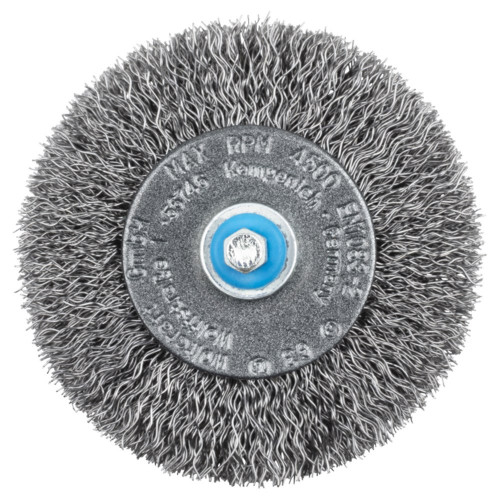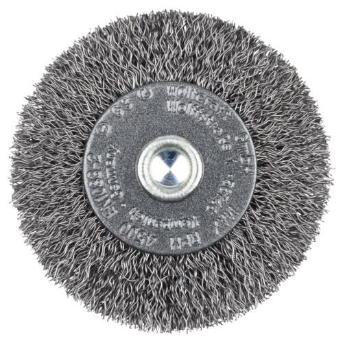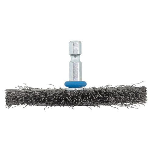Staaldraad-schijfborstel. Ø 75 mm. Hoogte bezetting 16 mm. Schacht zeskant. Lengte draad 17 mm. Voor ontroesten en reinigen . Ter voorbereiding van soldeer- en laswerkzaamheden. Goed geschikt Metaal, Plaat . Voorwaardelijk geschikt Non-ferrometaal, hout, Steen
