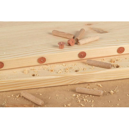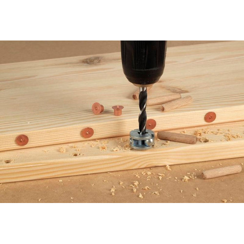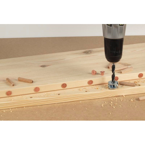 Dit slimme hulpmiddel is een kosteneffectieve oplossing voor het markeren van tegenoverliggende boorposities voor houtdeuvelverbindingen. De set bevat 4 deuvelbevestigingen van robuust staal. Deze hebben een schacht die u in het geboorde deuvelgat van het eerste deel van uw werkstuk steekt. De andere kant van de deuvelbevestiging is voorzien van een metalen punt waarmee u de correcte boorpositie kunt markeren op het andere deel van uw werkstuk. Schuif de delen dicht tegen elkaar aan en lijn deze correct op elkaar uit. Als u de planken nu tegen elkaar drukt, boren de metalen punten van de deuvelbevestiging in het hout van de tegenoverliggende plank, waardoor de boorpositie voor de aansluitende deuvelboringen wordt gemarkeerd.