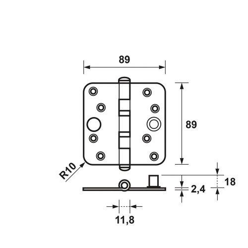 Lichtlopend, inbraakwerend, stalen AXA veiligheids kogellagerscharnier met een hoog draagvermogen en ronde hoeken.