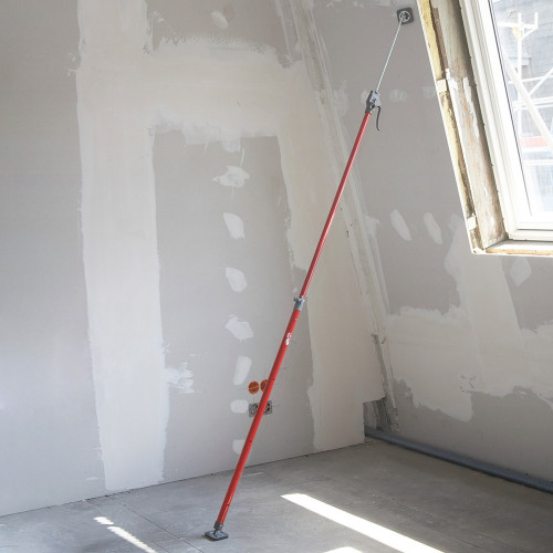 Maximale capaciteit 30 kg • instelbaar van 125-290 cm • maakt een helling mogelijk tot 45 schuin dak • scharnierende antislip steunplaten • grove instelling over de binnenbuis • fijnafstelling door middel van het handvatpompmechanisme • snelle stuwkracht over de stang • een hand steun bij plafonds en hellingen • universeel gebruik in huis / hobby / werkplaats. De plafondsteun wordt gebruikt als een montagehulp voor tijdelijke ondersteuning van plafonds en gipsplaten.