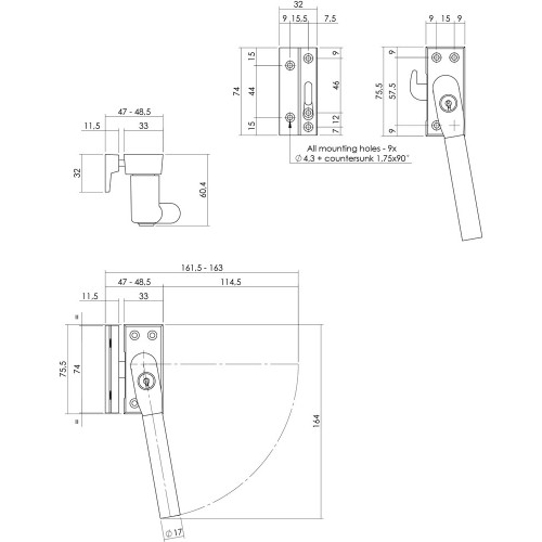 SKG* AFSLUITBARE RAAMSLUITING RECHTS MESSING GELAKT COMPLEET