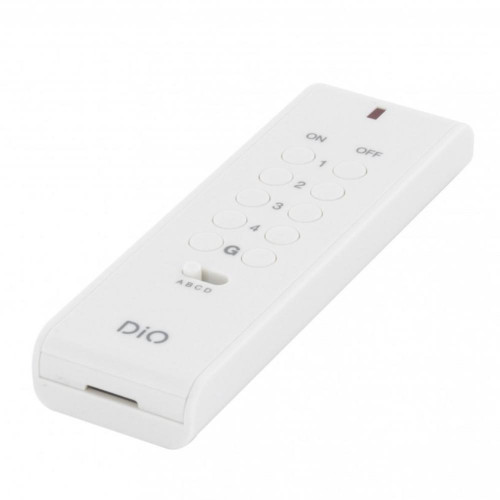 DiO 1.0 Afstandsbediening 16 kanalen Ultraplatte afstandsbediening met 16 kanalen en een groepsfunctie voor het bedienen van uw lampen, rolluiken of elektrische apparaten die aangesloten zijn op een DiO 1.0-ontvanger (module voor lampen, module voor motoraandrijvingen, schakelstopcontacten of lampen van DiO). Merk: DiO Dimfunctie: instellen van de lichtintensiteit 100% compatibel met het DiO assortiment Het radiosignaal gaat door muren en wanden heen om lampen en apparaten in het hele huis te bedienen. 4 kanelen direct te bedienen, met schuifje om tussen 4 zones te schakelen. Totaal 16 kanalen. Met groep functie(G) en alles aan/uit functie. Bereik:50 m Frequentie:433.92 MHz Batterij afstandsbediening:CR2032 3 V inbegrepen Algemene informatie DiO 1.0 Alle DiO 1.0 artikelen zijn onderling koppelbaar. Dit werkt via het 433 Mhz radiofrequentieprotocol. Het bereik is ongeveer 50 meter. Het assortiment bestaat uit zenders en ontvangers. Aan een zender kunnen meerdere ontvangers gekoppeld worden. Ontvangers kunnen meerdere zenders hebben. Er is een DiO Hub beschikbaar waarmee alles gelinkt kan worden aan Google Home of Amazon Alexa. DiO producten zijn vergelijkbaar met Klikaanklikuit en in veel gevallen onderling uitwisselbaar.