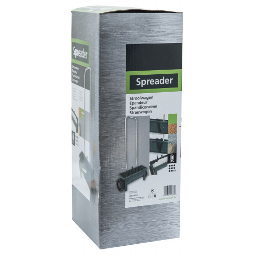 De Dario strooiwagen is een stevige, praktische strooier waarmee u moeiteloos en snel gelijkmatig kunstmest, zaden of zout kunt strooien. Met de dubbele duwstang kan de trolley veilig en comfortabel worden geleid. De kliksluiting aan beide zijden maakt ruimtebesparende opslag mogelijk. De behuizing van de tuinstrooier bestaat uit hoogwaardig, breukvast kunststof en heeft een corrosiebestendige, weerbestendige rol. De strooihoeveelheid kan naar behoefte worden aangepast met de instelhendel.
