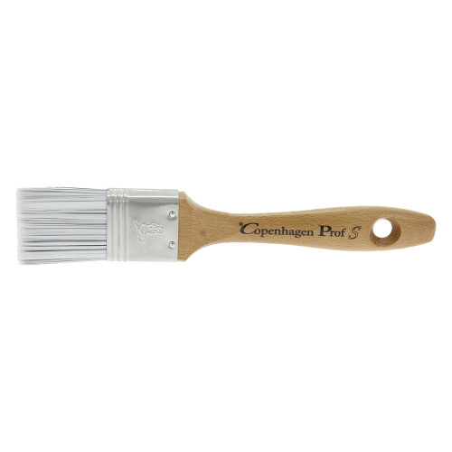 Platte kwast alkyd. Synthetisch haar, RVS bus, gewaxte beukenhouten steel.