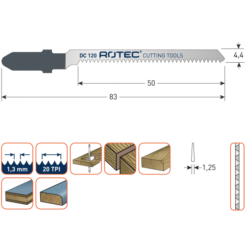 Zacht hout, verlijmd hout, geplastificeerde platen (1,5-15mm), speciaal voor het zagen van bochten.