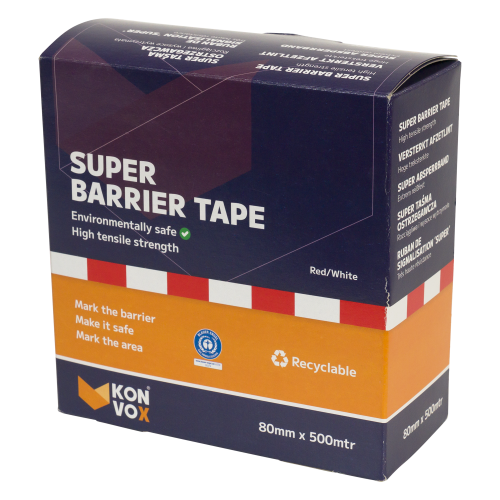 AFZETBAND, SUPERSTERK ROOD/WIT 500M X 8CM
