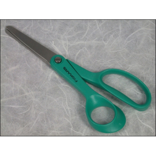 kleur: groen- merk: Fiskars- staalsoort: roestvrij - handgreep: kunststof - herkomst: Finland- lengte:13,50 cm- gewicht:23 gram- toepassing:kleuterschaar - extra gegevens: groene ogen, linkshandig
