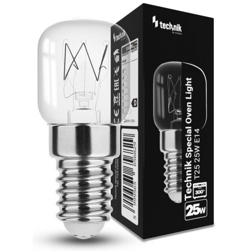 Halogeen ovenlamp Geschikt voor temperaturen tot 300 graden. Merk: Technik Type: Buislamp T25 Fitting: E14 Wattage: 25 Watt Dimbaar: Ja Lichtkleur: 2700 Kelvin Branduren: 1500