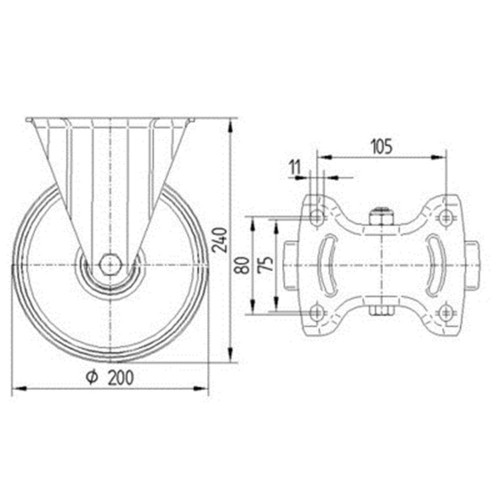 BOKWIEL 200MM - RUBBER - ZWART - 205KG