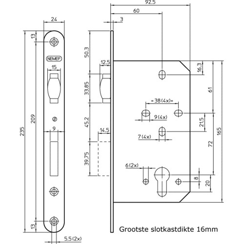TONROLDEURSLOT 689/5-KV-60MM RECHT