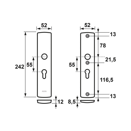 standaard toepasbaar op deuren van 38 tot 40 mm dik, voor dikkere deuren zijn verlengde krukstiften en bout leverbaar