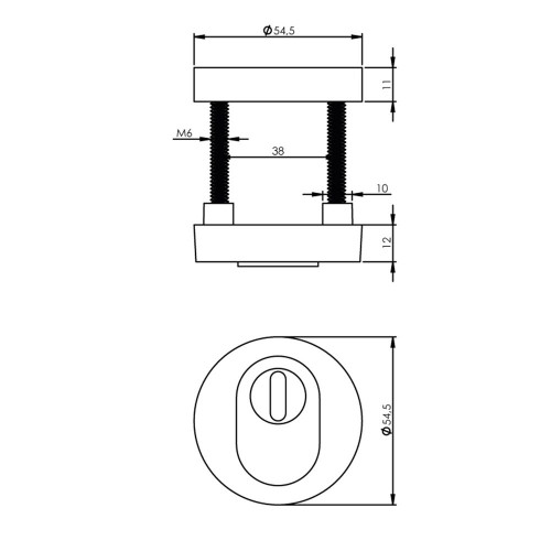SKG3 VEILIGHEIDSROZETTEN ROND VERDEKT ø55X12MM PROFIELCILINDERGAT MET KERNTREKBEVEILIGING MESSING GELAKT