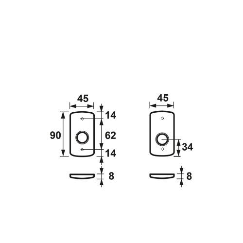 BINNENDEURROZETTEN CURVE KLIK KRUKGAT /90X45X8/ALU. GESL. F1