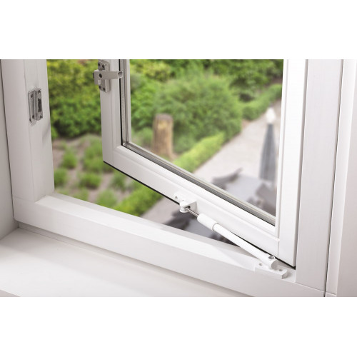 steekt bij het openen van het raam niet naar binnen en is daardoor uitstekend te combineren met een hor, vitrage of raamdecoratie